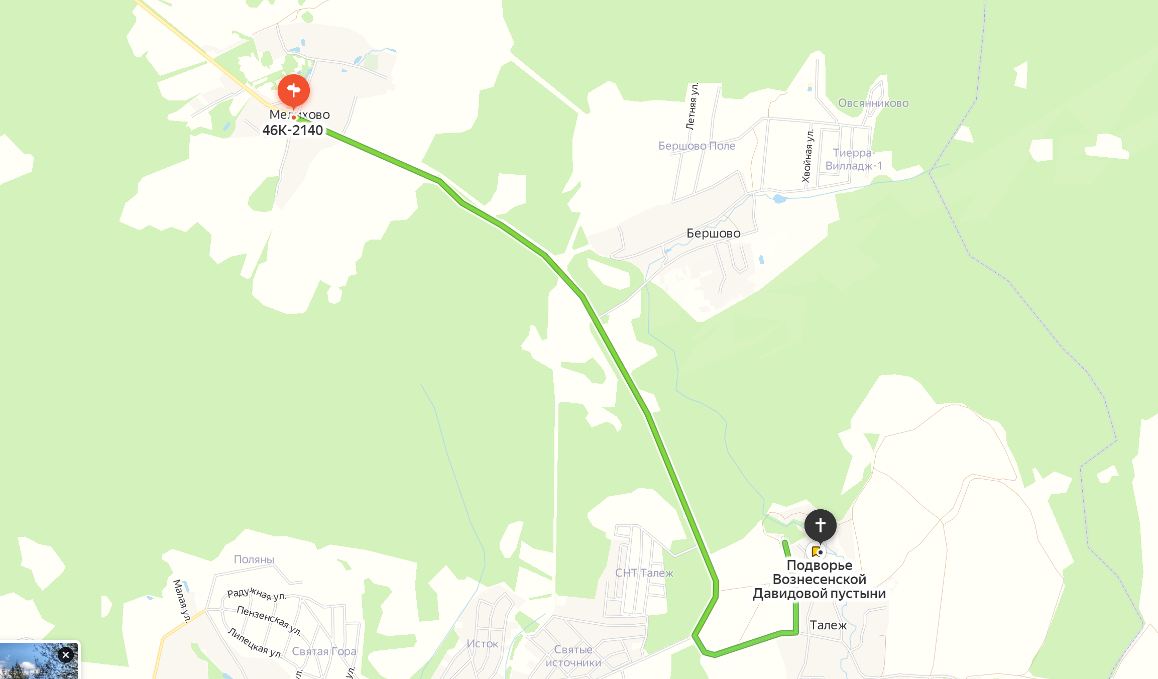 Село Талеж расположено недалеко и от с. Мелихово мы проехали около 6 км. Рядом с с. Талеж расположено Подворье Вознесенской Давидовой пустыни. Координаты: 55.088410, 37.696548