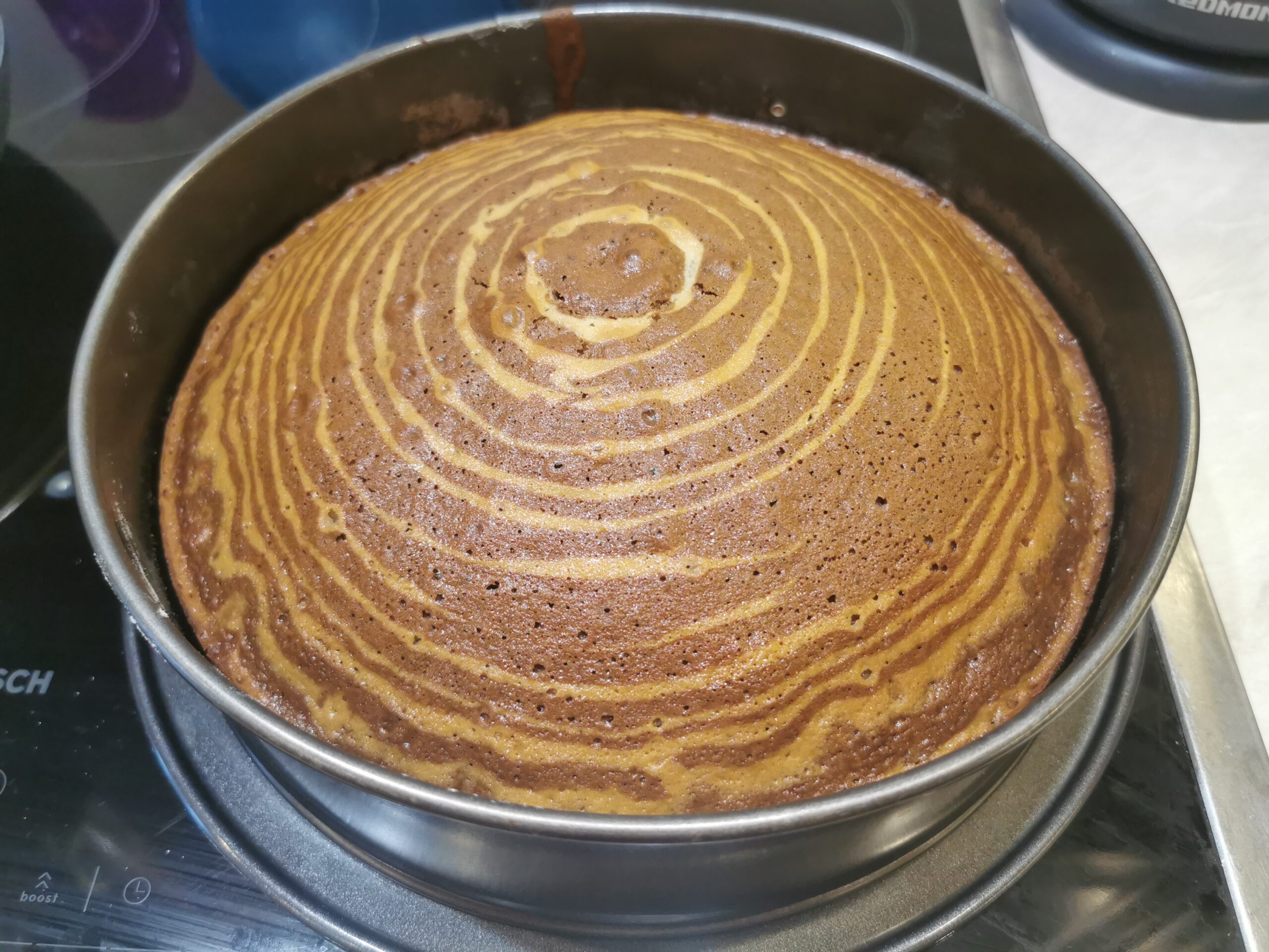 - Лить в центр формы по 1 ст. л. каждой смеси и далее чередуя